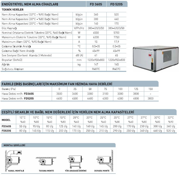 FRAL Endüstriyel-Kanallı Tip Nem Alma Cihazları FD-520 S (520 lt/gün - 4000 m³/h)